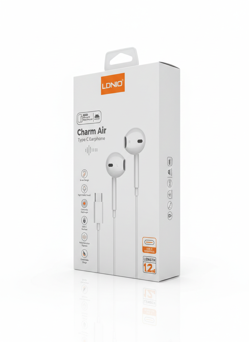 سماعات أذن LDNIO Charm Air بمنفذ Type-C لهواتف آيفون 15، آيباد وأجهزة أندرويد – أبيض
