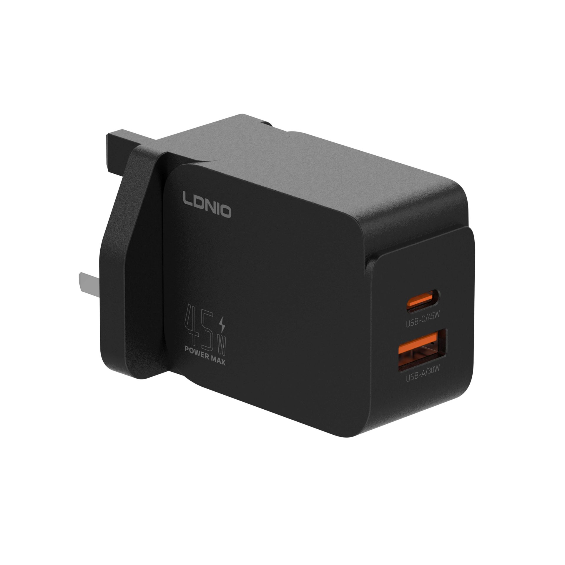 شاحن لدنيو LDNIO Q2 سريع بقوة 45 واط - منفذين USB-C و USB-A بتقنية PD و QC3.0