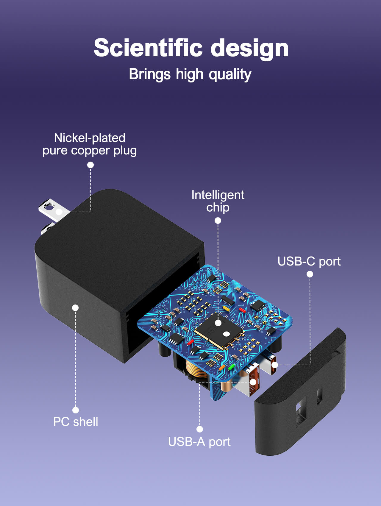 قوة خارقة: خرج طاقة يصل إلى 65 واط، مما يجعله مناسباً لشحن أجهزة الكمبيوتر المحمول (Laptops)، الأجهزة اللوحية، والهواتف الذكية.